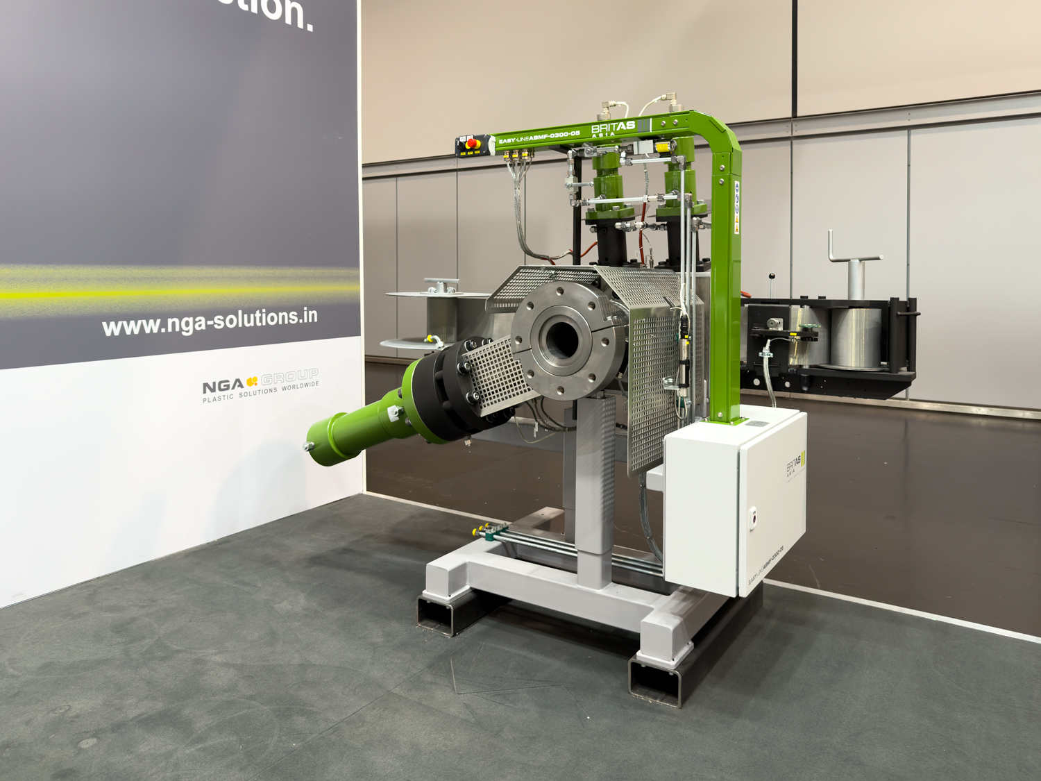 In addition, the BritAS Asia EASY LINE ABMF-0300-05 Automatic Belt Melt Filter was introduced. Designed for smaller throughputs, this system enables efficient removal of contaminants from plastic waste, producing high-quality regranulate. Based on proven BritAS technology, the EASY LINE version features a simplified design, fully automatic operation, and low operating costs. The system is manufactured in India and marketed jointly by NGA Plastic Technology and BritAS.